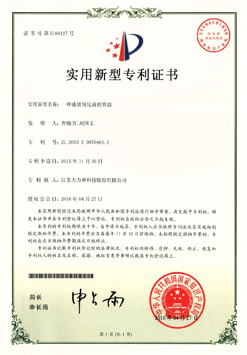 一种盛放钝化液的容器