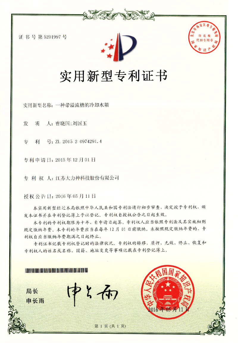 一种带溢流槽的冷却水箱